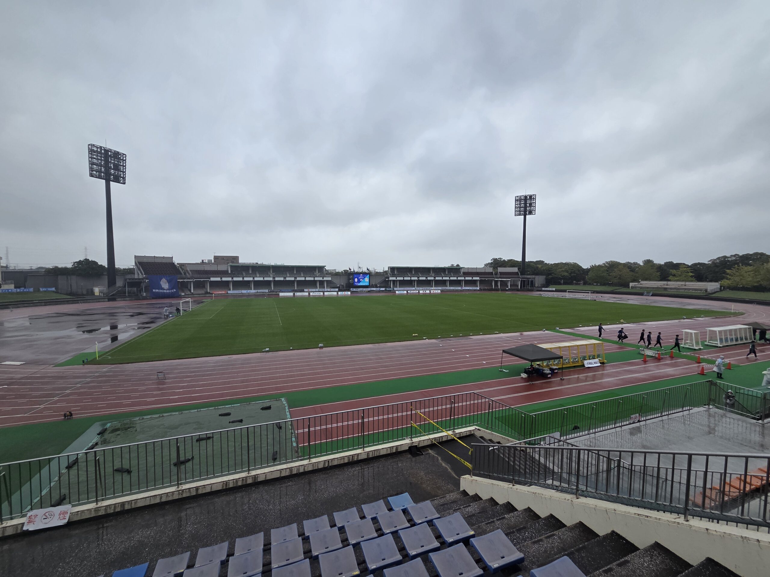 ピッチ内アップが終了し、スタンドは雨に打たれる音だけが響きます。