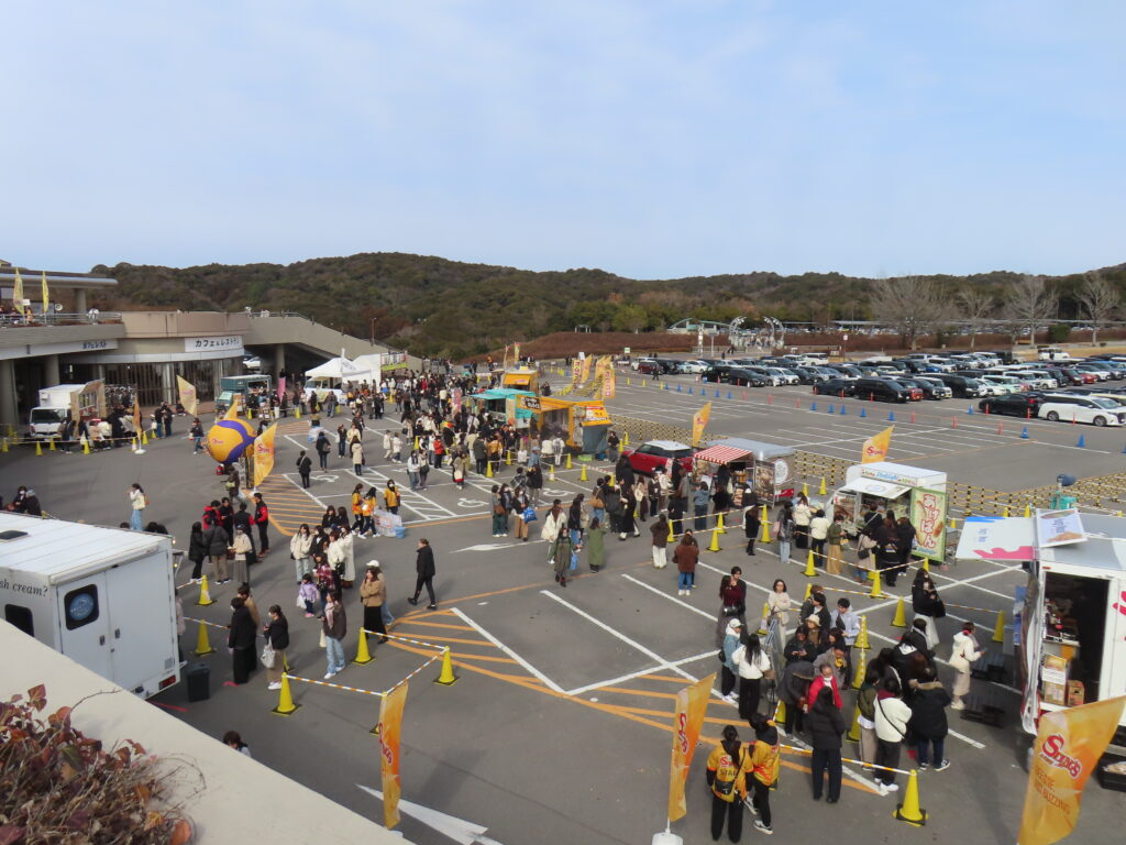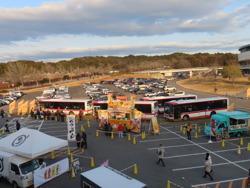スタジアムの外は、キッチンカーがずらり
