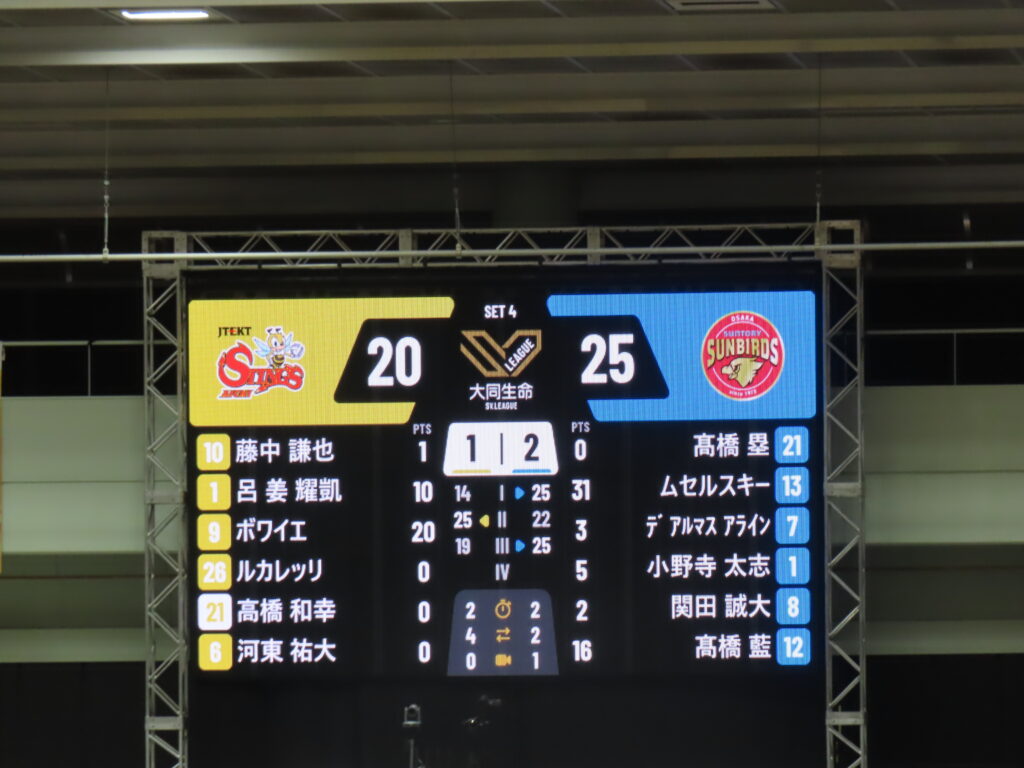 結果は、1-3でサントリーサンバーズ大阪の勝利