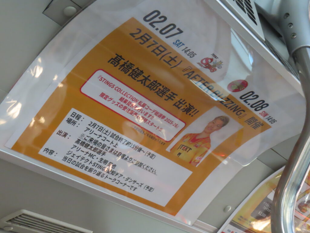 往路では気づかなかったですが、バス車内の広告がゴールド一色に張り替えられていました。企業努力