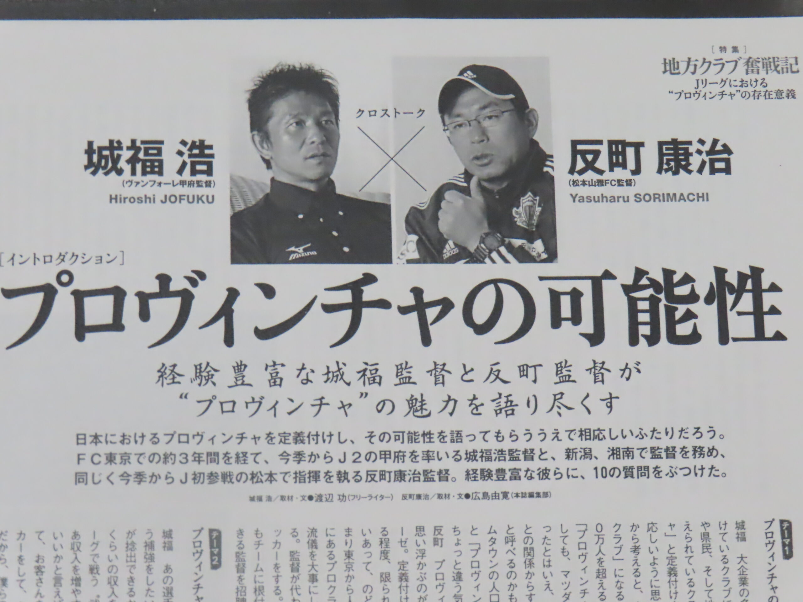 この記事のアイキャッチ画像は、2012年の城福監督(ヴァンフォーレ甲府)と反町監督(松本山雅)がそれぞれ就任1年目のときの10の質問インタビューについてです。